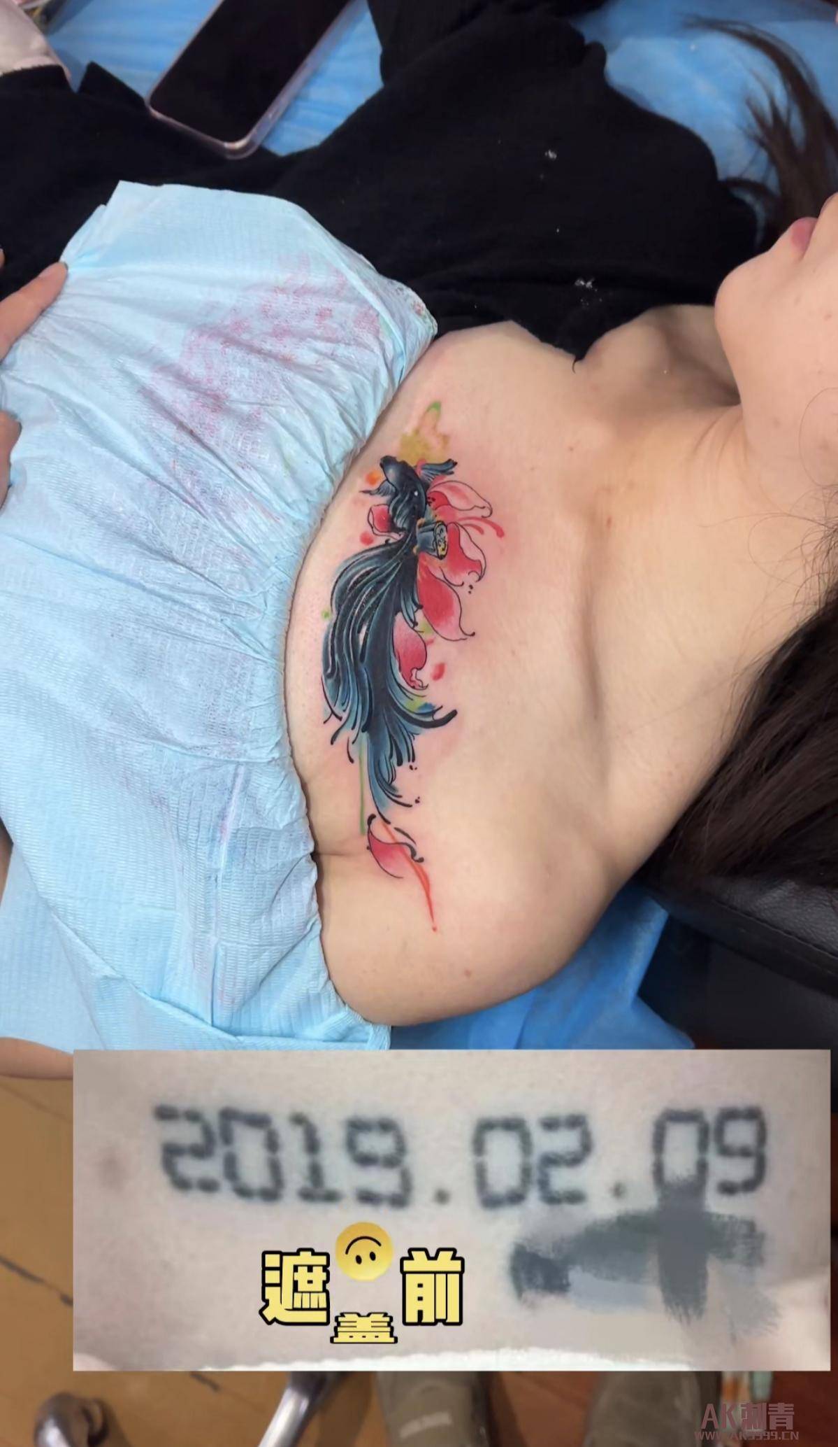 锦鲤完美遮盖旧日期纹身