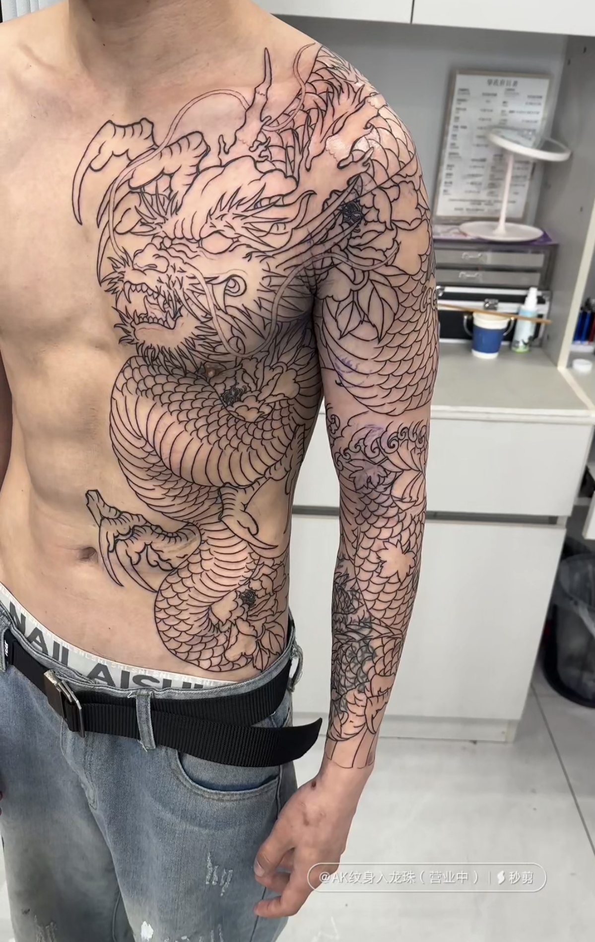 般若龙花臂纹身修改
